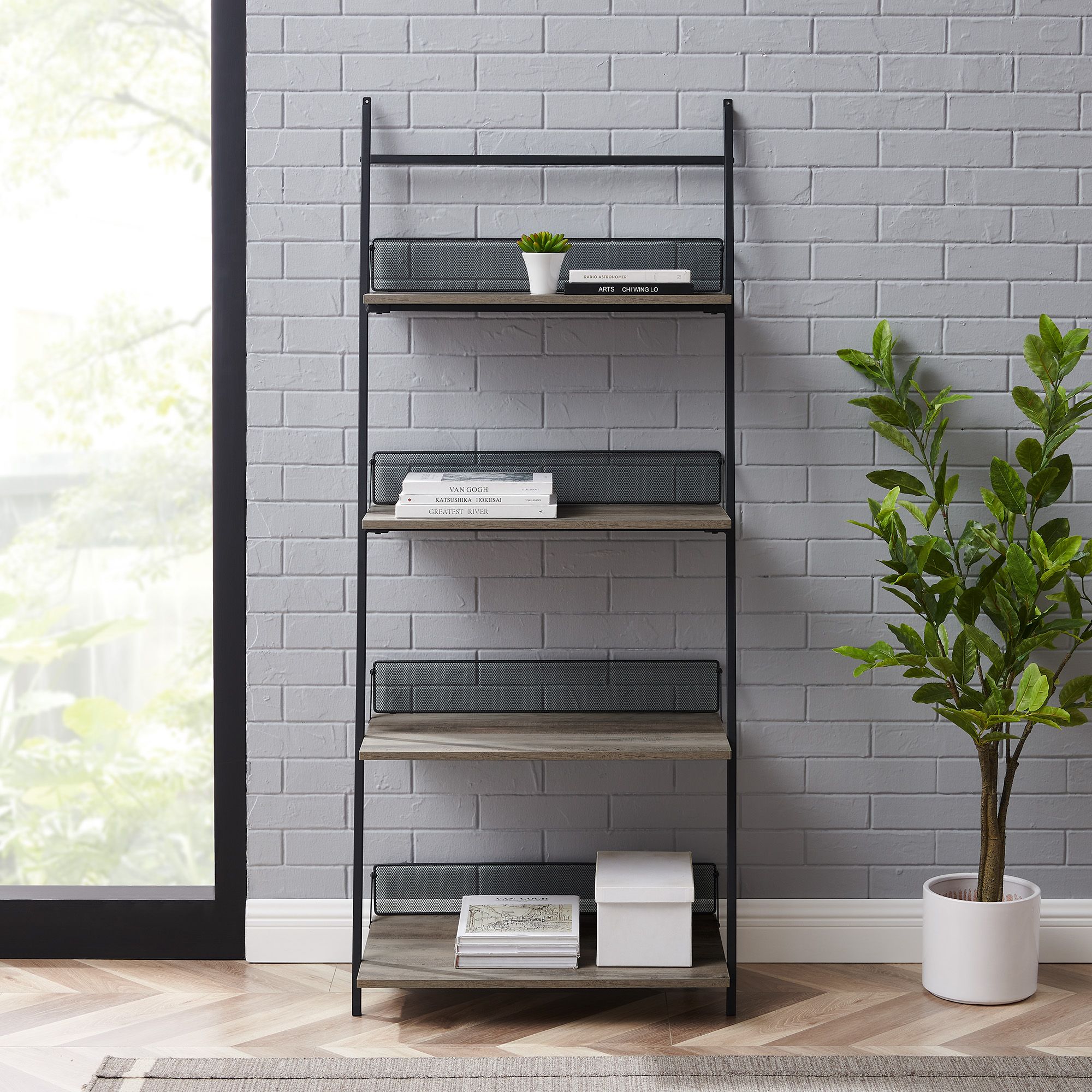 Itaar 4-Tier Ladder Shelf Bookcase with Drop-Down Desk If leaning desks make you a little nervous when it comes to stability this one might put your mind at ease. 72H Gray-Brown Finish 1-pc 47 out of 5 stars 354 15999 159. Shop for leaning ladder shelf online at Target.